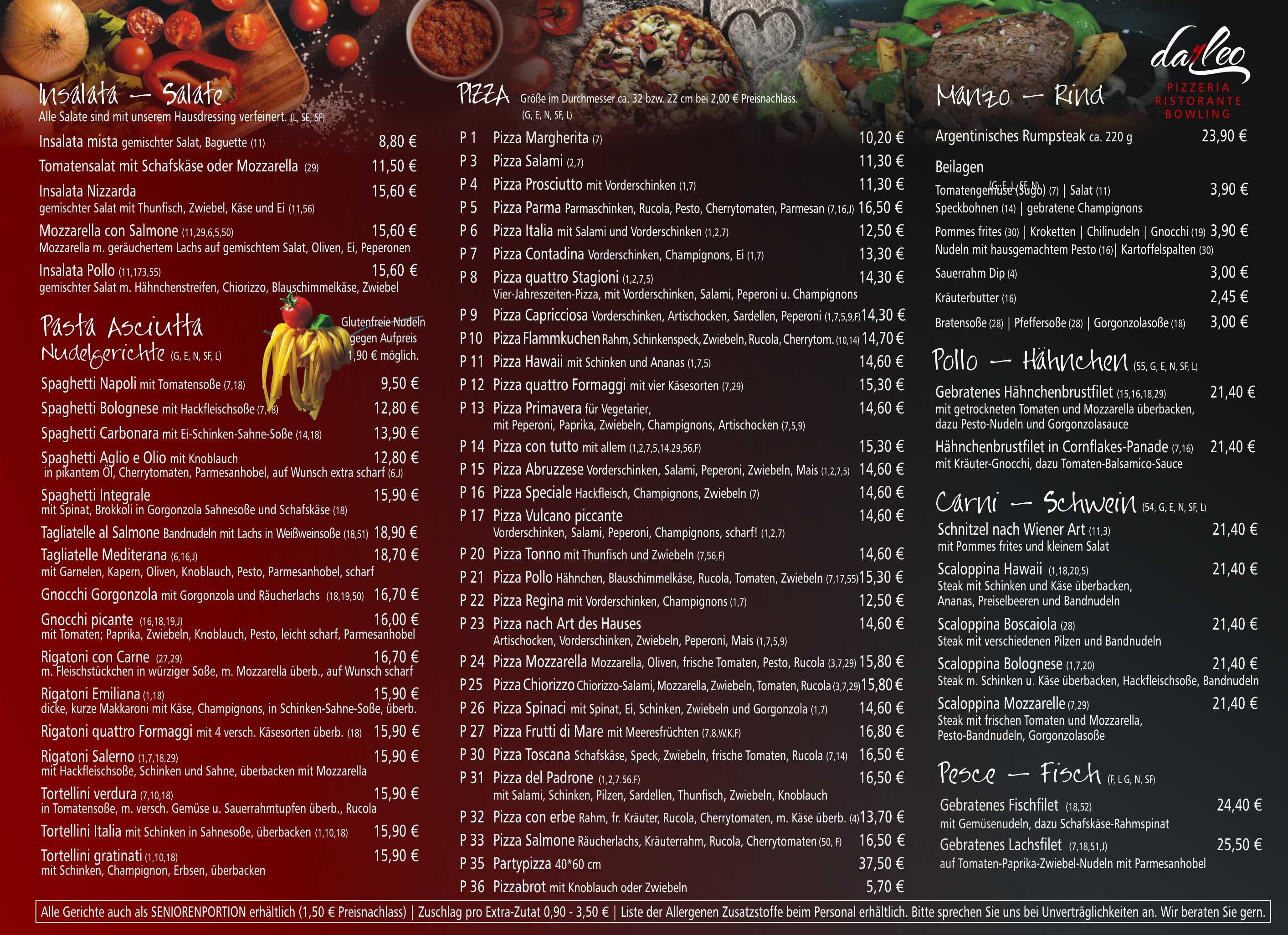 Informationen zu Allergenen und Zusatzstoffen finden sie in unserem Lokal beim Personal.